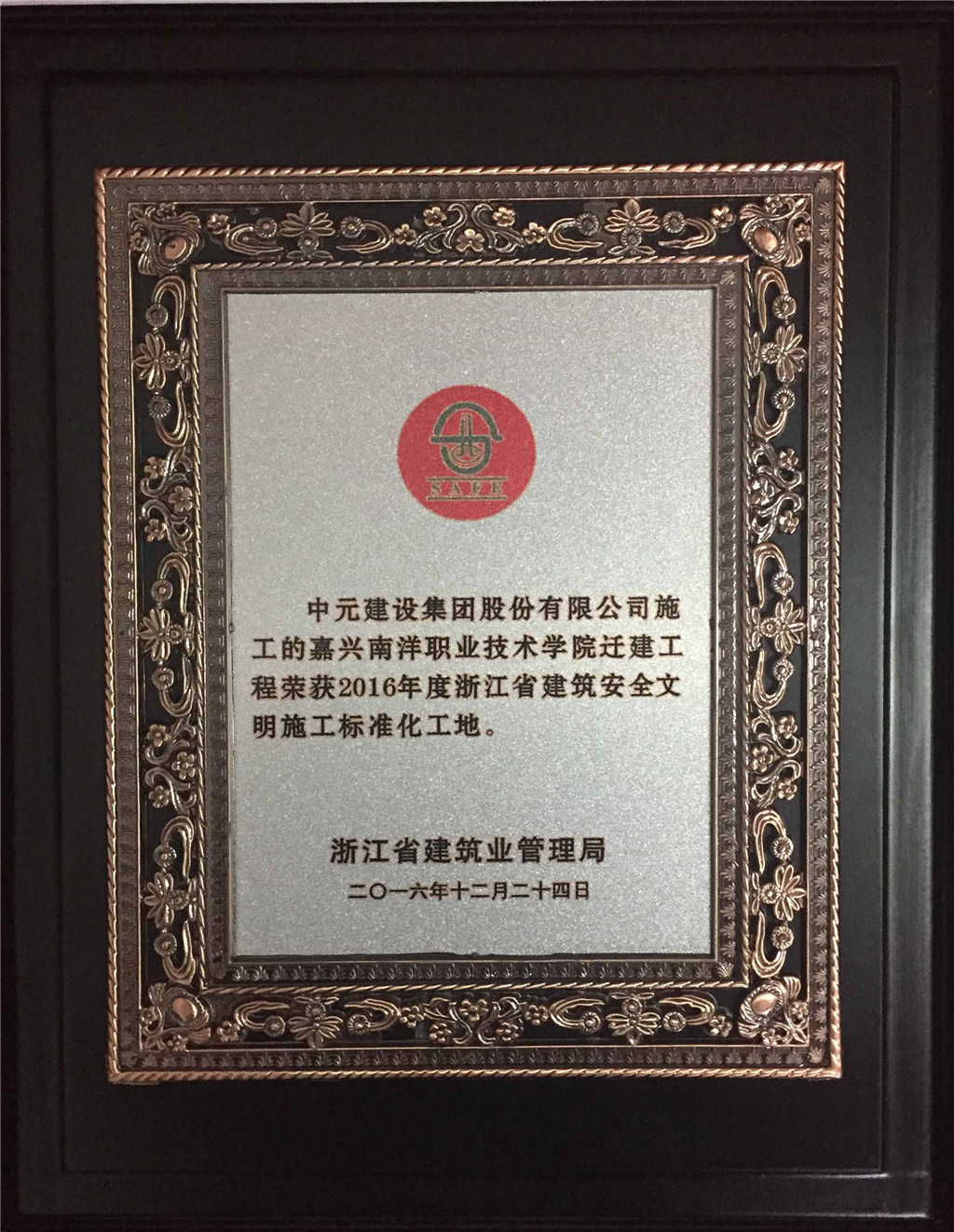 2016年度浙江省建筑安全文明施工标准化工地嘉兴市南洋职业技术学院钱建工程