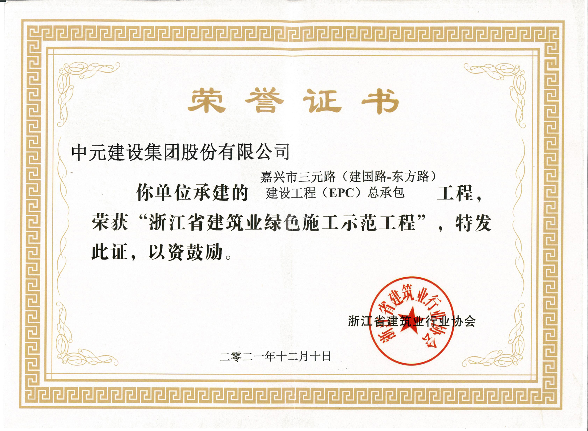 2021年度浙江省建筑业绿色施工示范工程(嘉兴市三元路(建国路-东方路)建设工程(EPC)总承包)