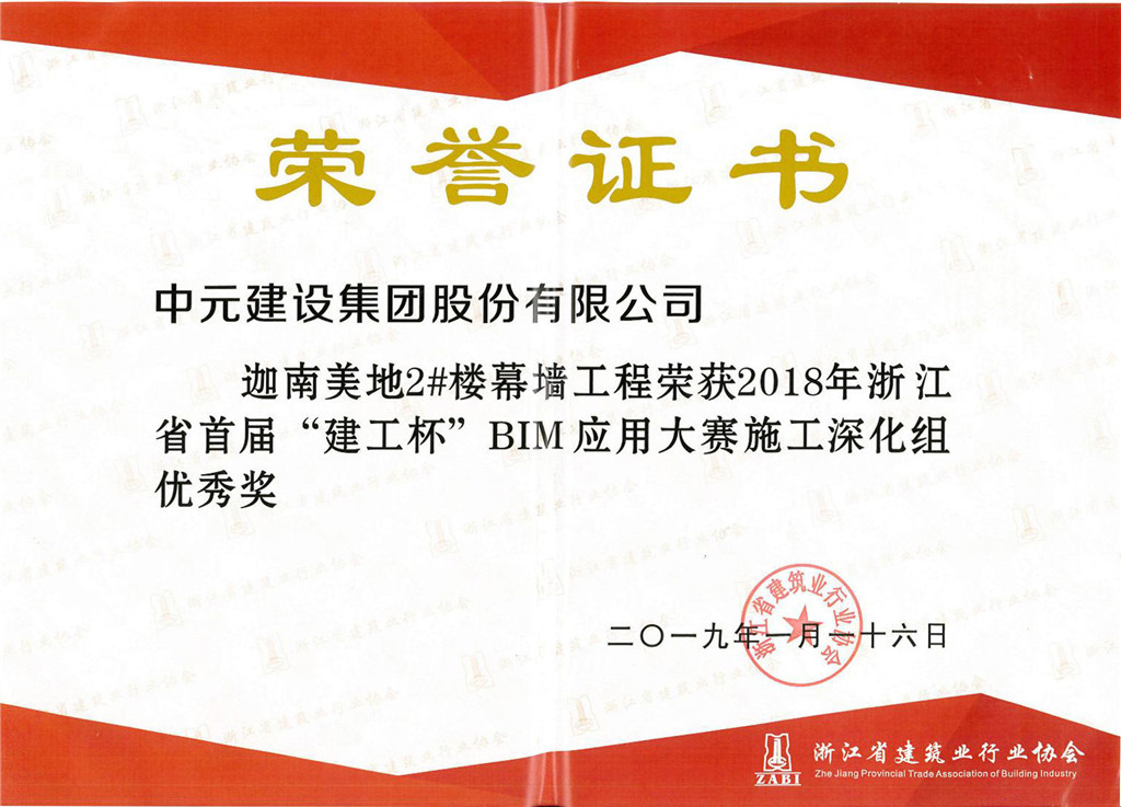 2018年浙江省首届建工杯BIM应用大赛施工深化组优秀奖(迦南美地2楼幕墙工地)