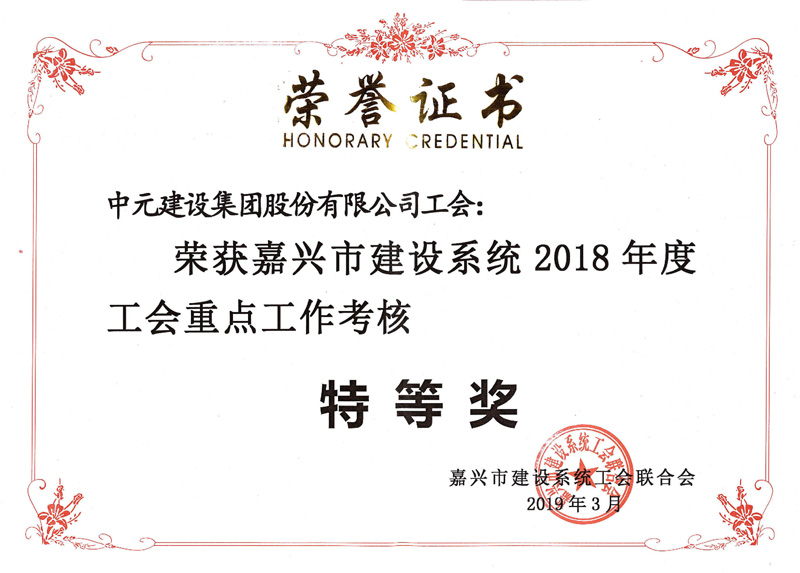 嘉兴市建设系统2018年度工会重点工作考核特等奖