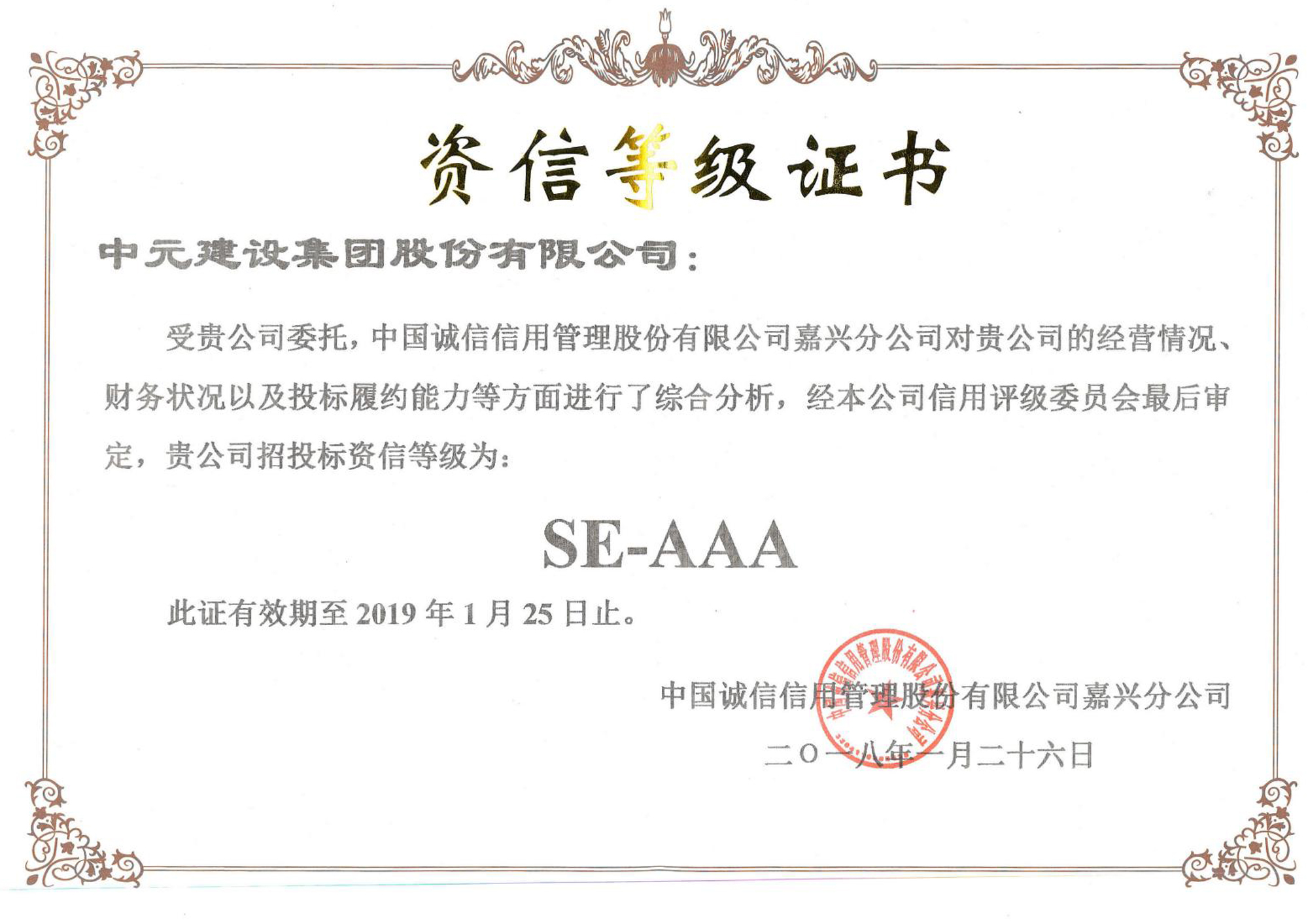 资信等级证书(SE-AAA)